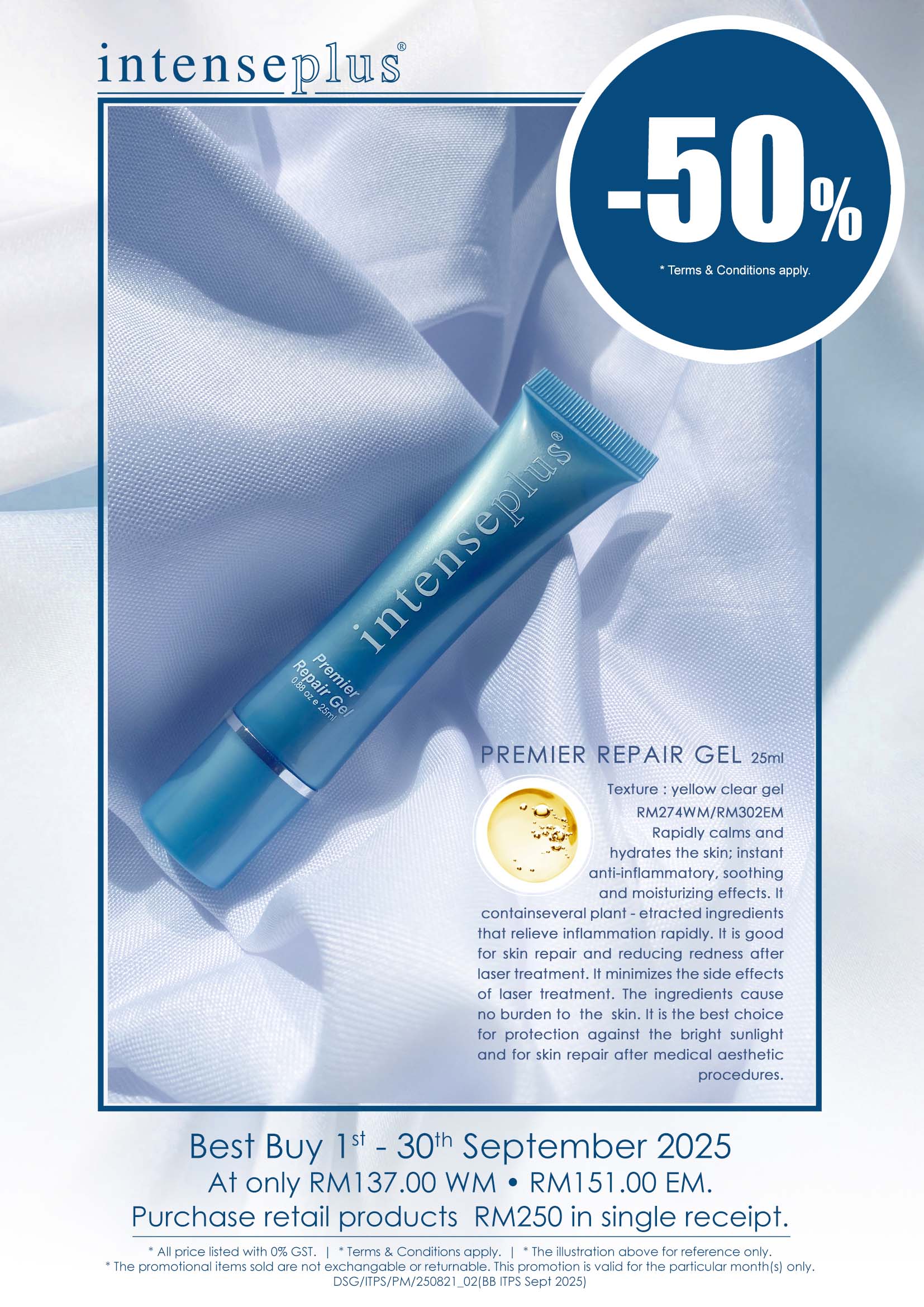 It contains several plant-extracted ingredients that relieve inflammation rapidly. It is good for skin repair and reducing redness after laser treatment. It minimizes the side effects of laser treatment. The ingredients cause no burden to the skin. It is the best choice for protection against the bright sunlight and for skin repair after medical aesthetic procedures.